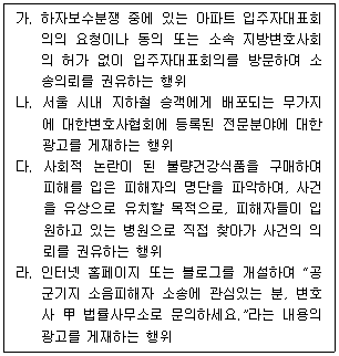 27. 다음 중 변호사 광고로서 허용되지 않는 행위를 모두 고른 것은?