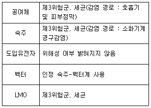 83. 다음은 시험‧연구용 LMO의 정보이다. 이를 사용하여 실험을 수행할 때 생물안전 확보를 위하여 준수해야 하는 사항으로 옳지 않은 것은?