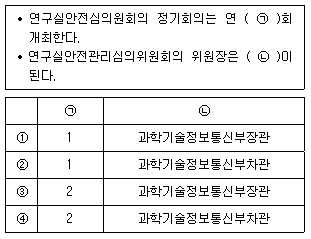 4. <보기>는 「연구실 안전환경 조성에 관한 법령」에서 규정하는 연구실안전심의위원회에 관한 설명이다. ( ) 안에 들어 갈 말로 옳은 것은?