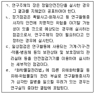 19. <보기>는 「연구실 안전환경 조성에 관한 법령」에서 규정하는 사전유해인자위험분석에 관한 설명이다. ( ) 안에 들어갈 말로 옳은 것은?