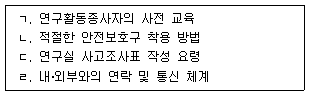 40. 연구실 비상대응 매뉴얼에 반드시 포함되어야 하는 내용만을 <보기>에서 모두 고른 것은?