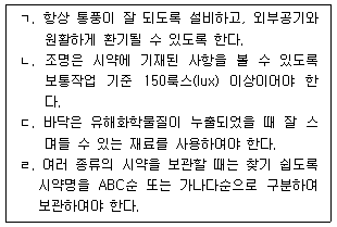 47. 연구실 화학물질 사고 예방을 위한 시약보관시설의 설치 및 운영 기준으로 옳은 것을 <보기>에서 모두 고른 것은?