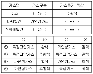 45. 다음은 「고압가스 안전관리법 시행규칙」에서 규정하는 가스 구분 및 용기 색상에 관한 내용이다. ( ) 안에 들어갈 말로 옳은 것은?