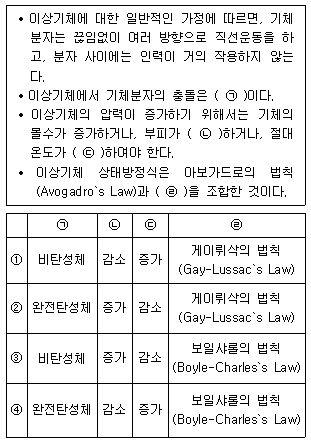 43. <보기>는 이상기체의 성질 및 법칙에 관한 설명이다. ( ) 안에 들어갈 말로 옳은 것은?