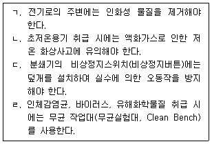 80. 연구기기 및 장비 취급 시 주의사항으로 옳은 것을 <보기>에서 모두 고른 것은?