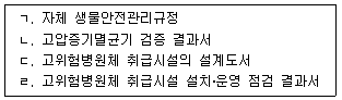 92. 「고위험병원체 취급시설 및 안전관리에 관한 고시」에서 규정하는 생물안전 2등급 고위험병원체 취급시설의 설치‧운영신고 시 제출해야하는 서류를 <보기>에서 모두 고른 것은?
