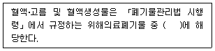 87. <그림>의 의료폐기물 전용용기에 배출 가능한 폐기물이 아닌 것은?