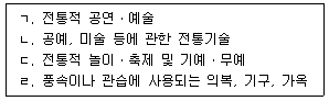 33. 무형유산에 해당하는 것을 모두 고른 것은?