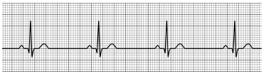 25. 55세 남자가 회의 도중 가슴을 짓누르는 듯한 통증과 답답함을 호소한다. 현장에 도착한 구급대원이 시행한 심전도가 다음과 같을 때 의심할 수 있는 소견으로 옳은 것은?