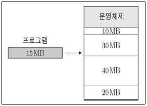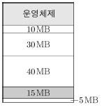 12. 다음과 같이 분할된 빈 메모리에 프로그램을 할당할 때 최악 적합(Worst Fit)에 해당하는 것은?