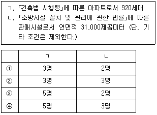11. 「화재의 예방 및 안전관리에 관한 법률」 및 같은 법 시행령상 소방안전관리보조자의 인원기준에 따른 'ㄱ, ㄴ'의 최소 선임 인원은?