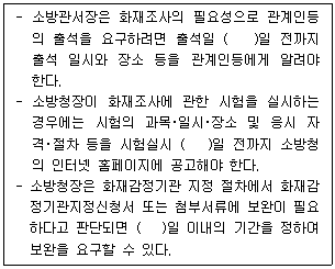 21. 「소방의 화재조사에 관한 법률」 및 같은 법 시행령, 시행 규칙상 ( ) 안에 들어갈 수의 합으로 옳은 것은?