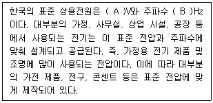 32. 대한민국 표준 상용 전원에 대한 설명이다. (A)와 (B)에 적절한 것은?