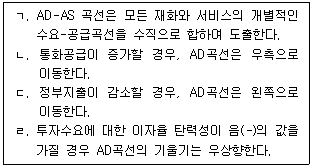 27. 폐쇄경제 총수요(AD)-총공급(AS)모형에 관한 설명으로 옳지 않은 것을 모두 고른 것은?