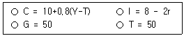 28. 아래 폐쇄경제 완전고용을 고려한 균형국민소득 결정모형에서 콥-더글라스 생산함수가 Y=K0.5L0.5이고, 자본(K)과 노동(L)의 공급량은 각각 100으로 고정되어 있다. 초기 균형상태에서 정부가 지출을 10만큼 증가시키는 경우, 균형이자율변화(차이)의 절댓값은? (단, Y는 국민소득, C는 소비, T는 조세, I는 투자, r은 이자율, G는 정부지출이다.)