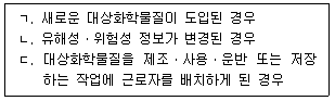 59. 산업안전보건법령상 사업주가 작업장에서 취급하는 대상화학물질의 물질안전보건 자료에 관한 교육을 실시하는 경우를 모두 고른 것은?