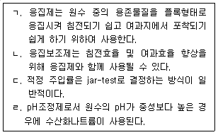 1. 수처리제에 관한 설명으로 옳은 것을 모두 고른 것은?
