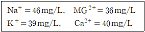 34. 시료의 양이온 농도를 측정한 결과가 다음과 같을 때, 총경도(mg CaCO3/L)는? (단, Na+, Mg2+, K+, Ca2+의 원자량은 각각 23, 24 ,39, 40으로 한다.)