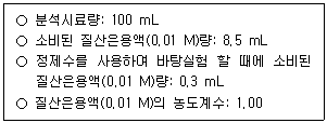 31. 먹는물수질공정시험기준상 염소이온을 질산은적정법으로 측정하였을 때 염소이온농도(mg/L)는?