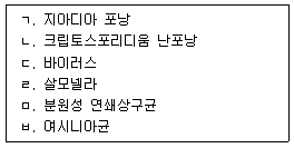 14. 수도법령상 정수처리기준에서 정한 병원성미생물로 옳은 것을 모두 고른 것은?
