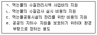 37. 먹는물관리법상 샘물등의 개발허가를 받은 자에게 징수한 수질개선부담금의 용도로 옳은 것을 모두 고른 것은?