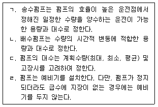 76. 펌프의 용량과 대수 결정에 관한 설명으로 옳은 것을 모두 고른 것은?