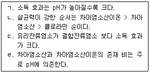 12. 염소소독 효과에 관한 설명으로 옳은 것을 모두 고른 것은?