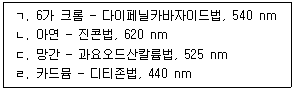 32. 수질오염공정시험기준에서 자외선/가시선 분광법을 이용한 측정 항목, 방법 및 파장의 연결이 옳은 것을 모두 고른 것은?