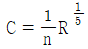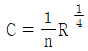 68. Manning의 평균유속공식에서 조도계수(n), Chezy 유속계수(C)와 동수반경(R)의 관계로 옳은 것은?