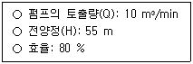 55. A정수장에서 펌프의 운전조건이 다음과 같을 때 펌프의 동력(kW)은 약 얼마인가? (단, 비중은 1이며, 여유율은 무시한다.)