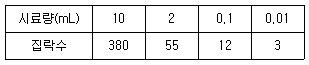 35. 수질오염공정시험기준상 상수원수에서 분원성대장균군을 막여과법으로 검출하여 아래 표와 같은 결과를 얻었다. 해당 상수원수에서 검출된 분원성대장균군수(분원성대장균군수/100 mL)로 옳은 것은?