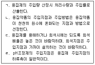 42. 응집용 약품주입설비의 운영에 관한 내용으로 옳은 것을 모두 고른 것은?