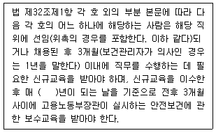 60. 산업안전보건법령상 안전보건관리책임자 등에 대한 직무교육에 관한 내용이다. ( )에 들어갈 숫자로 옳은 것은?