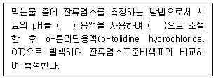 26. 다음은 먹는물수질공정시험기준상 잔류염소-OT 비색법에 관한 설명이다. ( )에 들어갈 용어를 순서대로 나열한 것은?