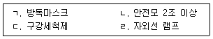 45. 정수장의 염소실에 비치하여야 하는 품목을 모두 고른 것은?