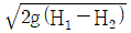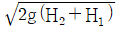 63. 그림과 같이 수심 H1인 수조에 직경 D인 사이폰(syphon)이 설치되어 있다. 관의 최하단 유출구 E는 수조의 바닥 기준면과 같은 높이이고 유출구 E로부터 사이폰 정점까지의 높이가 H2일 때, 다음 중 사이폰을 통해 흐르는 유속으로 옳은 것은? (단, 에너지손실은 무시한다.)