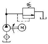 23. 그림과 같이 펌프 출구단 직후에 릴리프밸브를 설치하여 그 최대 압력을 제한하는 회로의 명칭은?