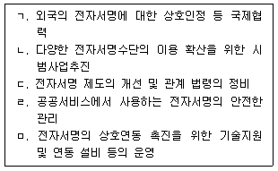 89. 다음 글상자에서 전자서명의 이용 촉진을 위한 지원 (2020. 6. 9 전부개정, 2021. 6. 10. 시행)에 대한 설명이 가장 올바르게 짝지어진 것은?