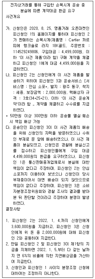 8. 다음 글상자는 한국소비자원의 분쟁조정 결정 사례이다. 이 사례에서 판단과 결정사항에 사용된 관련 법률로 가장 거리가 먼 것은?