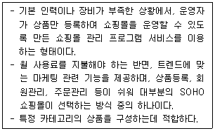 24. 다음 글상자에서 설명하고 있는 쇼핑몰 사이트 구축유형의 장점으로 가장 올바르지 않은 것은?
