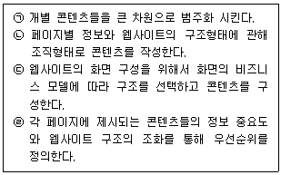 21. 다음은 웹사이트 구축 단계이다. (가)에 들어갈 내용으로 올바른 것은?
