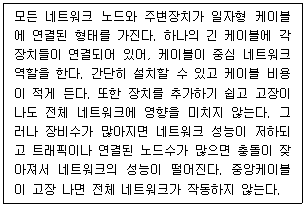 57. 다음 글상자에서 설명하고 있는 토폴로지로 가장 올바른 것은?