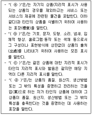 77. 다음 글상자는 상표법의 용어에 대한 설명이다([시행 2021. 6. 23.] [법률 제17728호, 2020. 12. 22., 일부개정]). 괄호 안의 용어가 올바르게 짝지어진 것은?