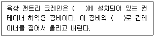 34. 육상 갠트리 크레인에 관한 설명으로 ( )안에 들어갈 용어를 순서대로 옳게 나열한 것은?