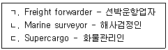 37. 다음은 컨테이너 화물의 흐름이다. ( )안에 순서대로 옳게 나열한 것은?