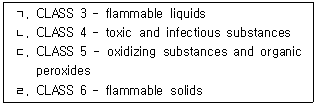 74. Select the most suitable one which classifies dangerous cargoes into the correct classes of IMDG Code.