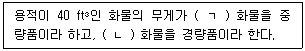 25. 다음은 경량품과 중량품의 판별 방법이다. ( )에 들어갈 내용을 순서대로 나열한 것은?