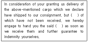55. Letter of Guarantee의 내용이다. ( )에 공통으로 들어갈 용어는?