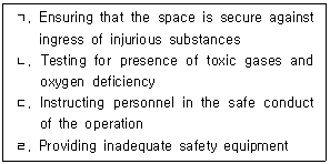 65. 선박의 밀폐된 공간(enclosed space) 진입 시 준수 사항으로 옳은 것을 모두 고른 것은?