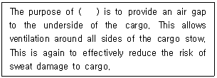 47. 컨테이너선에 적재될 컨테이너를 즉시 선적될 수 있도록 선적할 순서별로 적재하여 놓는 넓은 공간은?